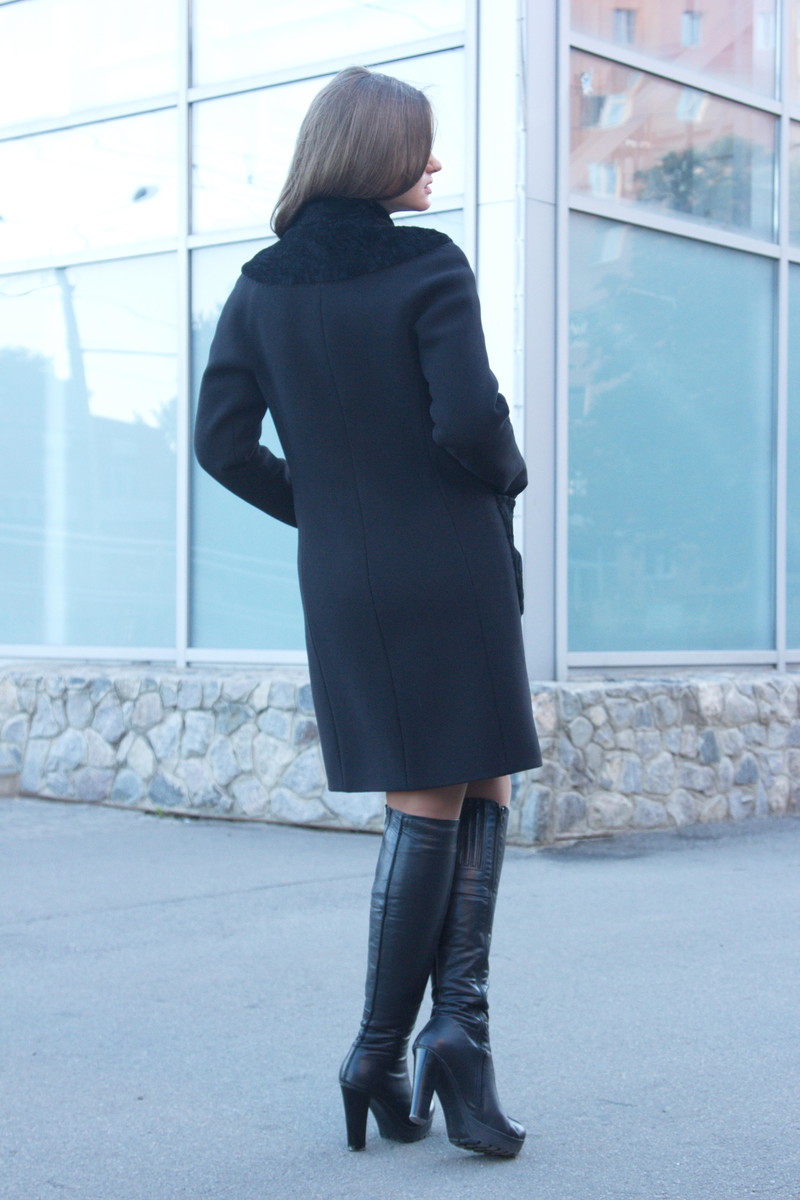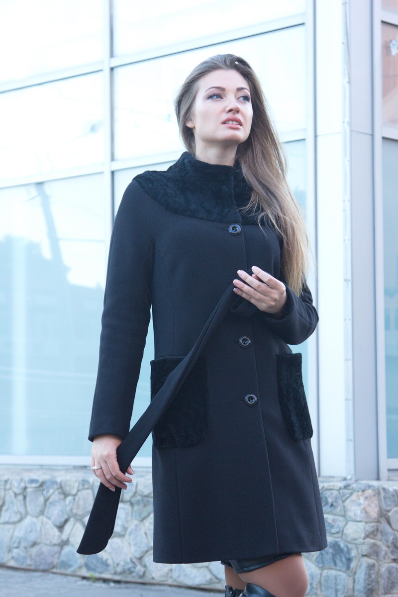 Ткань – «Кашемир Люкс». Ведь только она соответствует такому дорогому и выдержанному луку. Цельнокроеный рукав мягко повторяет форму плеча, кокетка и карманы выполнены из натуральной овчины, отделочная строчка довершает образ. А если вам станет чуточку грустно, разбавьте эту модель яркими аксессуарами. И жизнь заиграет новыми красками!