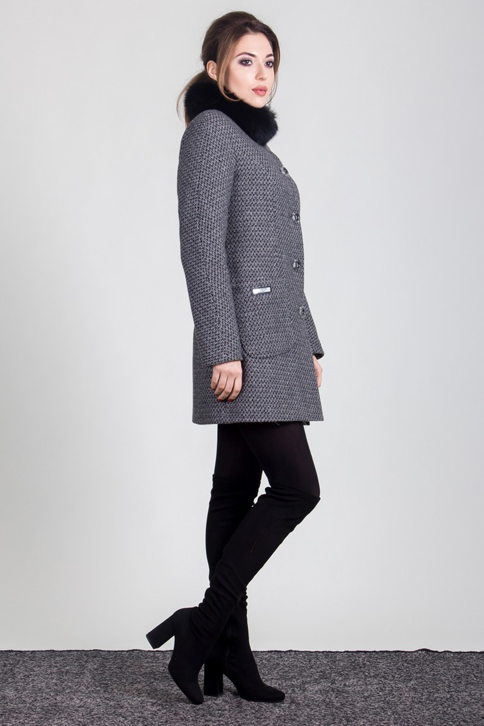 Женское полупальто с нежным пушистым воротником и накладными карманами. Застежка на пуговицы. Ткань - милый сердцу меланж, фаворит зимы.
