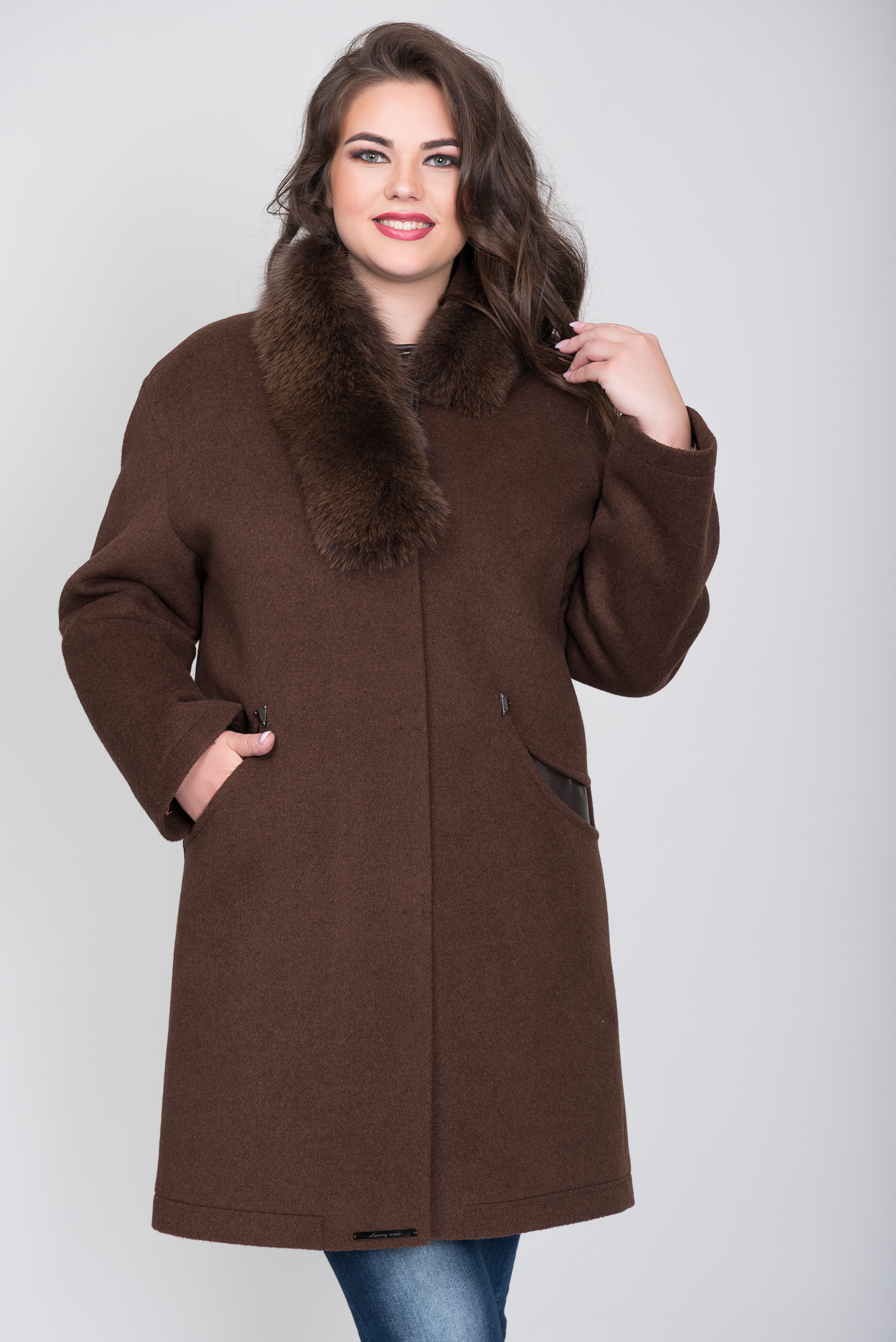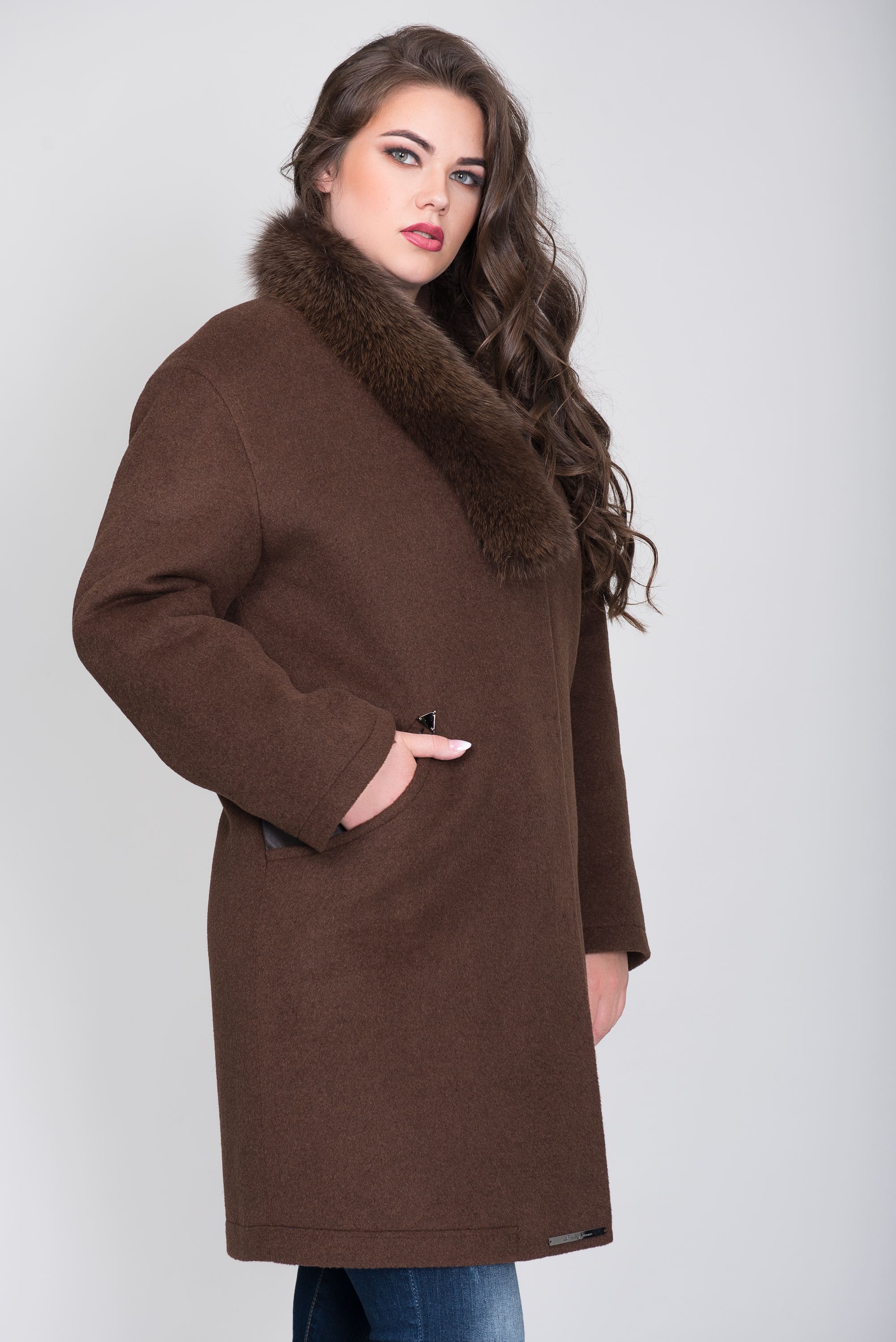 Это прямое женское зимнее пальто создано для ценительниц смешения стилей. Актуальный прямой силуэт – трендовое направление в нынешней моде. Асимметричный меховый воротник выглядит небрежно наброшенным, как в ретро образах гламурных 20-х. Строгость дизайна тяготеет к сухому деловому стилю, а мягкая форма плеч – ассоциируется с женственностью и романтикой. Все эти составляющие сливаются в гармоничный светский образ.