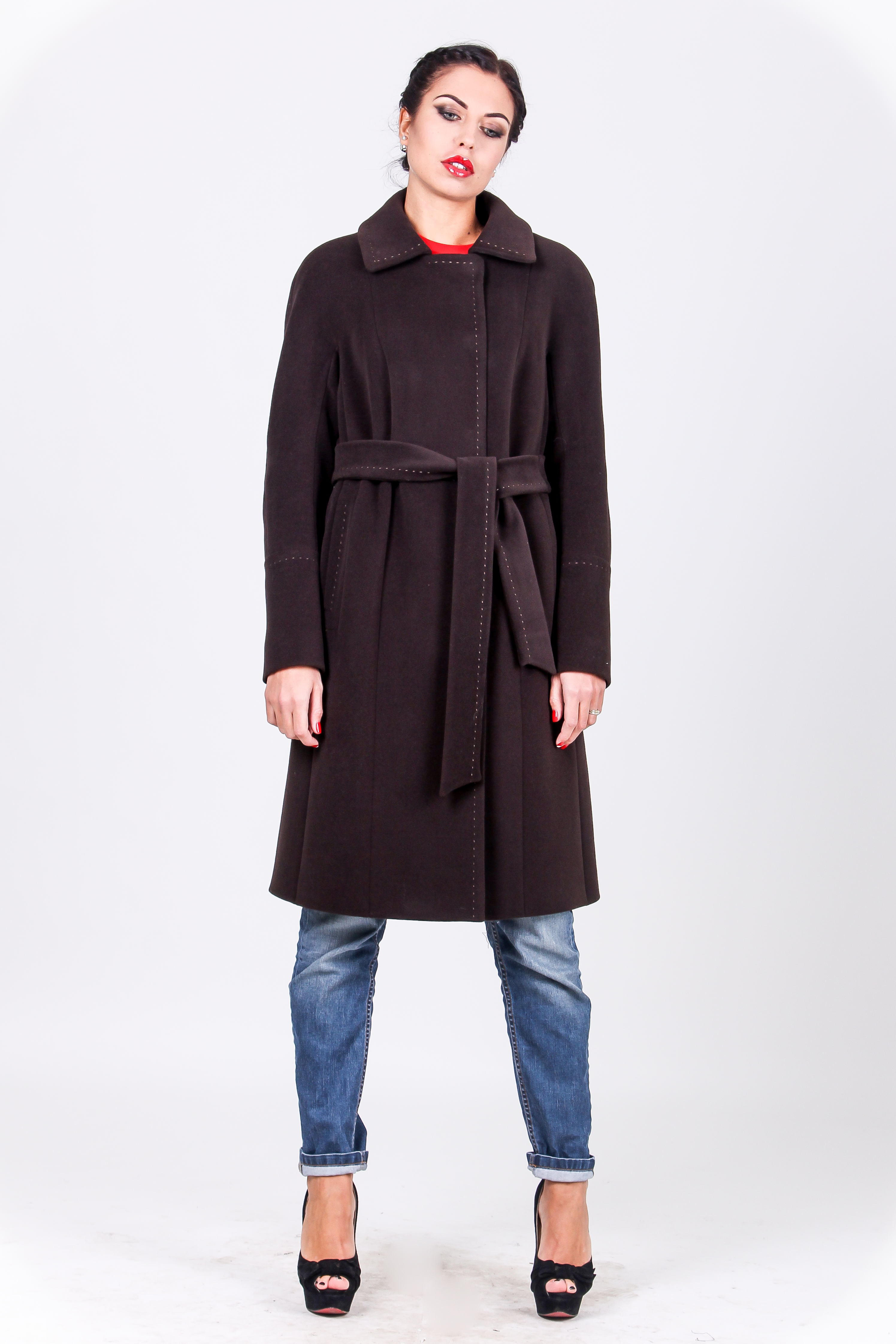 Шикарное и элегантное женское кашемировое пальто прямого силуэта. Рукав пальто цельнокроенный с отрезным низом, карман расположен в рельефе пальто под декоративной втачной листочкой; по спинке изделия - шлица, воротник - отложной с закруглёнными краями, застёжка потайная на пуговицах. Пояс завязной.