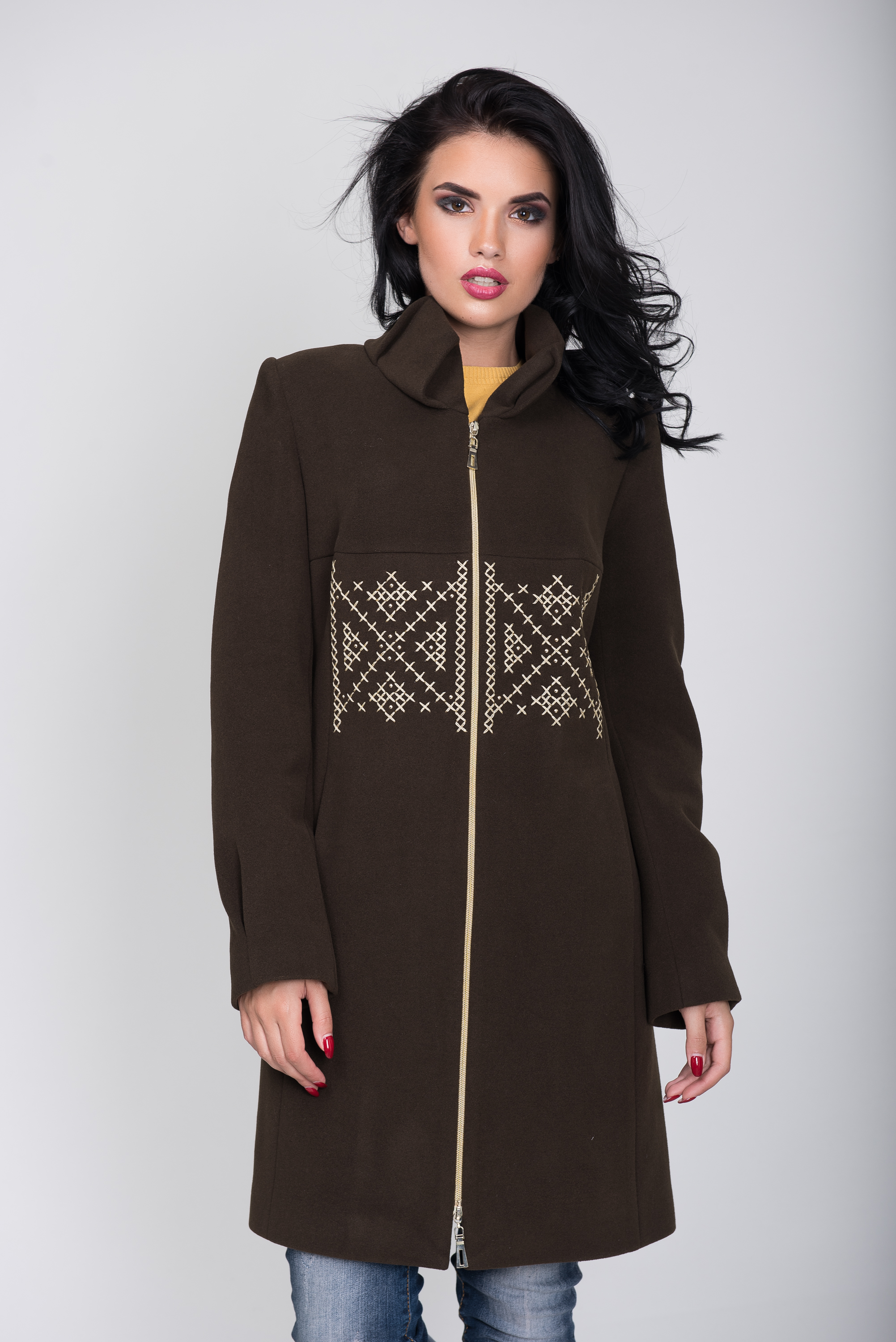 Этнические мотивы в одежде это всегда самобытно и ультрамодно. Это выражение яркой индивидуальности. В нашей осенней копилке есть оригинальная модель демисезонного пальто. Укороченная длина, застежка молния. Абсолютно уникальное решение воротника и манжетов - мягкие, уютные складки. Прорезные карманы.