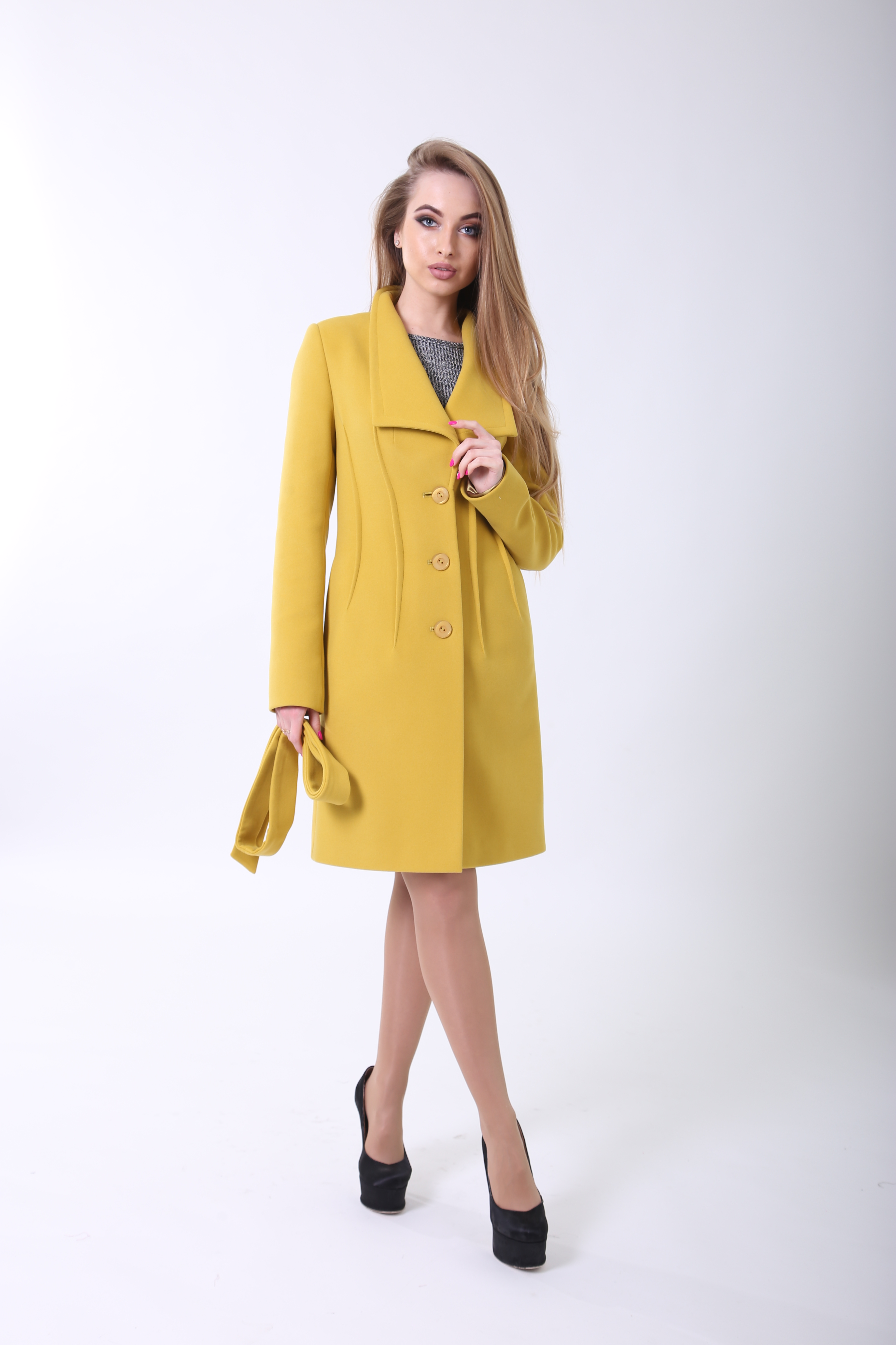 Эталон женственности, приталенное демисезонное пальто великолепно сочетается классической одеждой и обувью. С платьем, узкими и прямыми брюками, юбками мини и макси.
