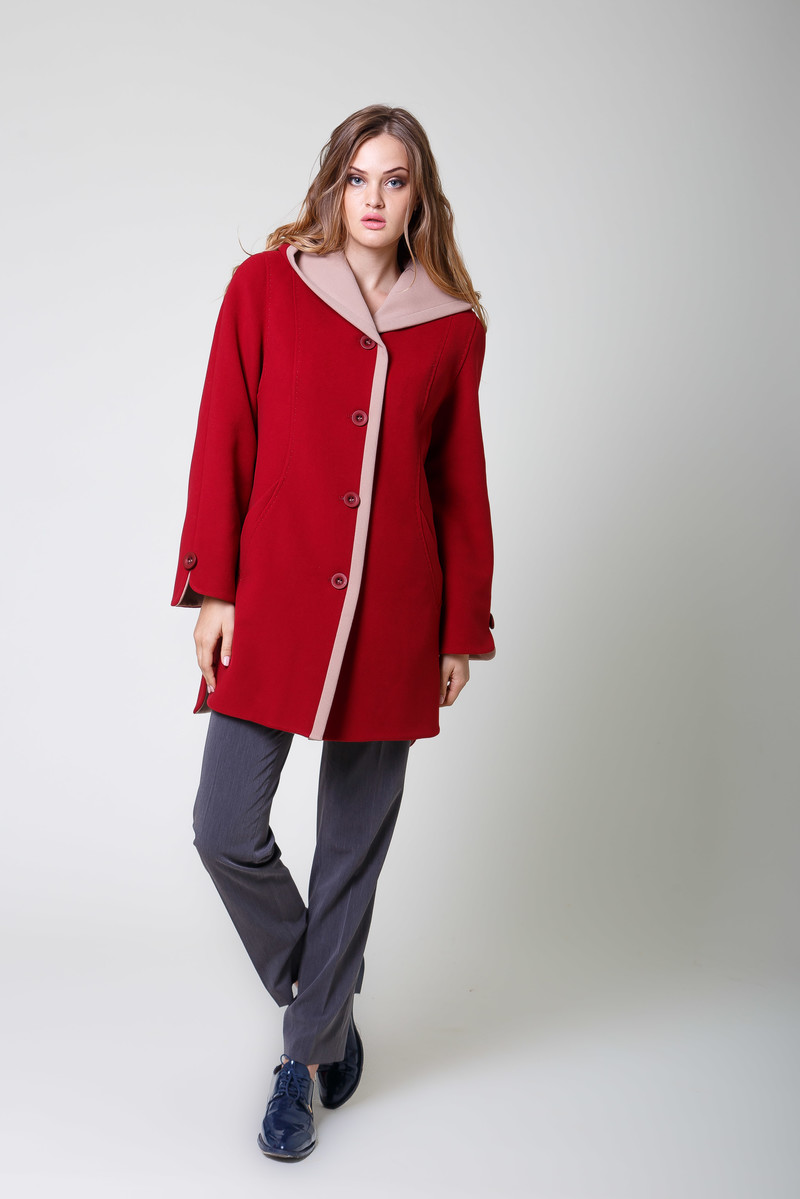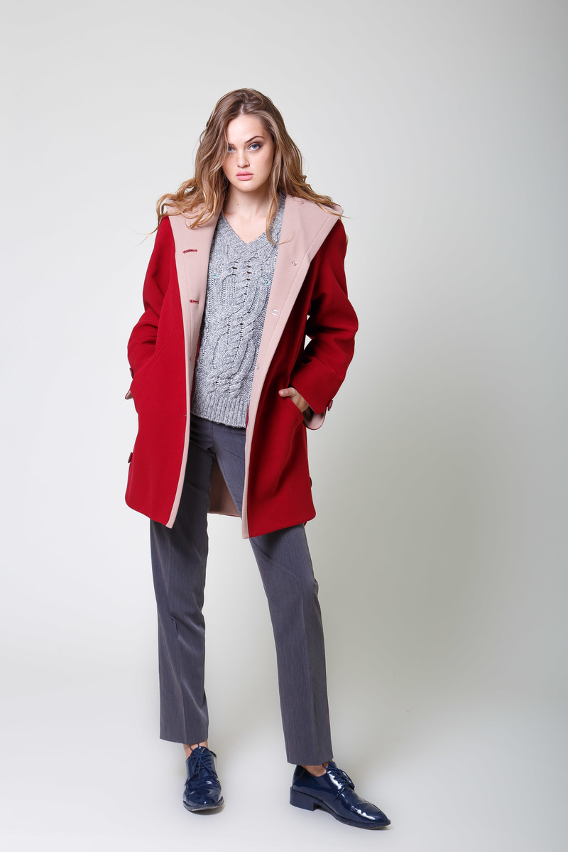 Пальто 2-528/9 Вишня+моккачино Артикул: 2-528/9