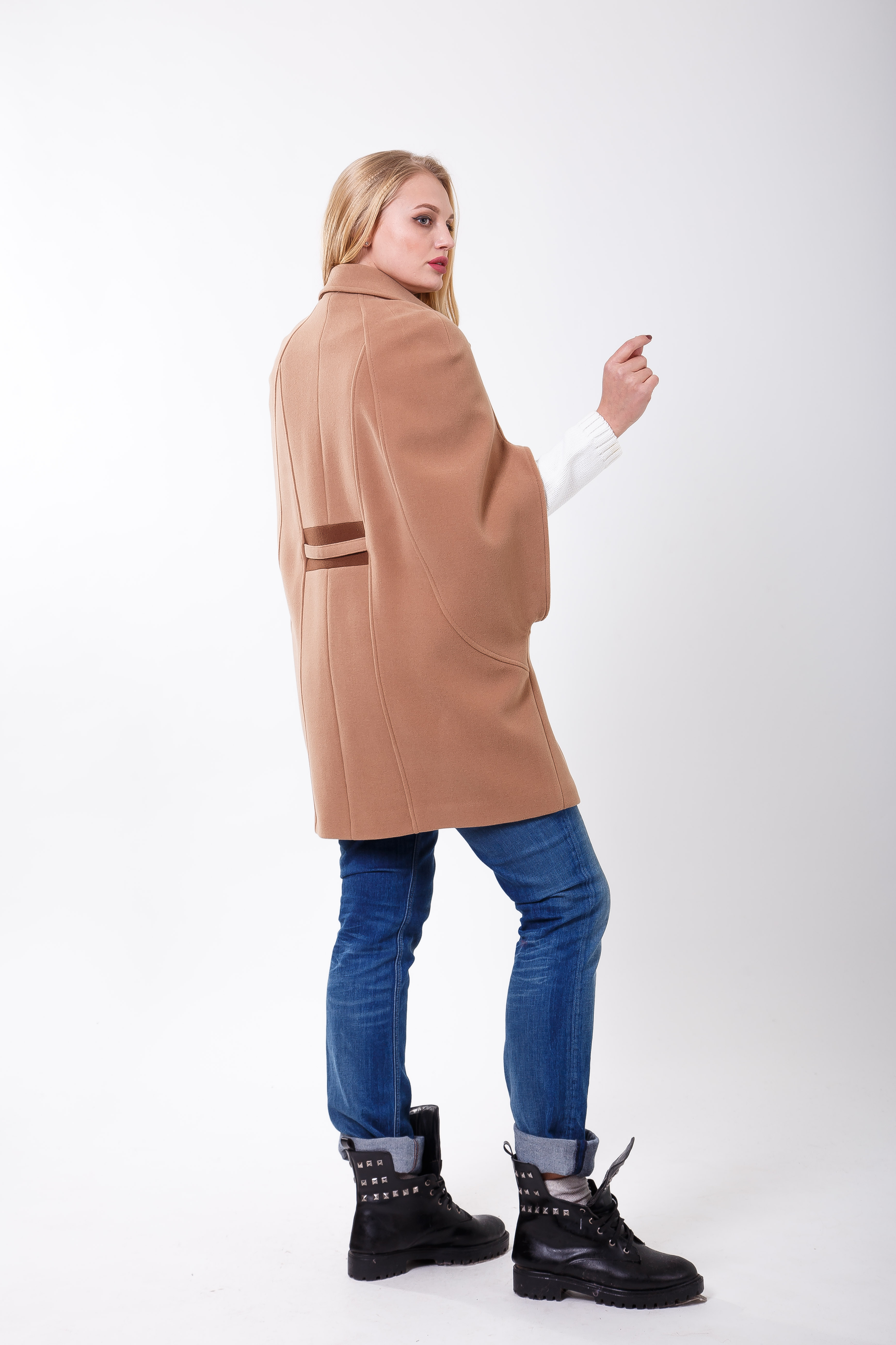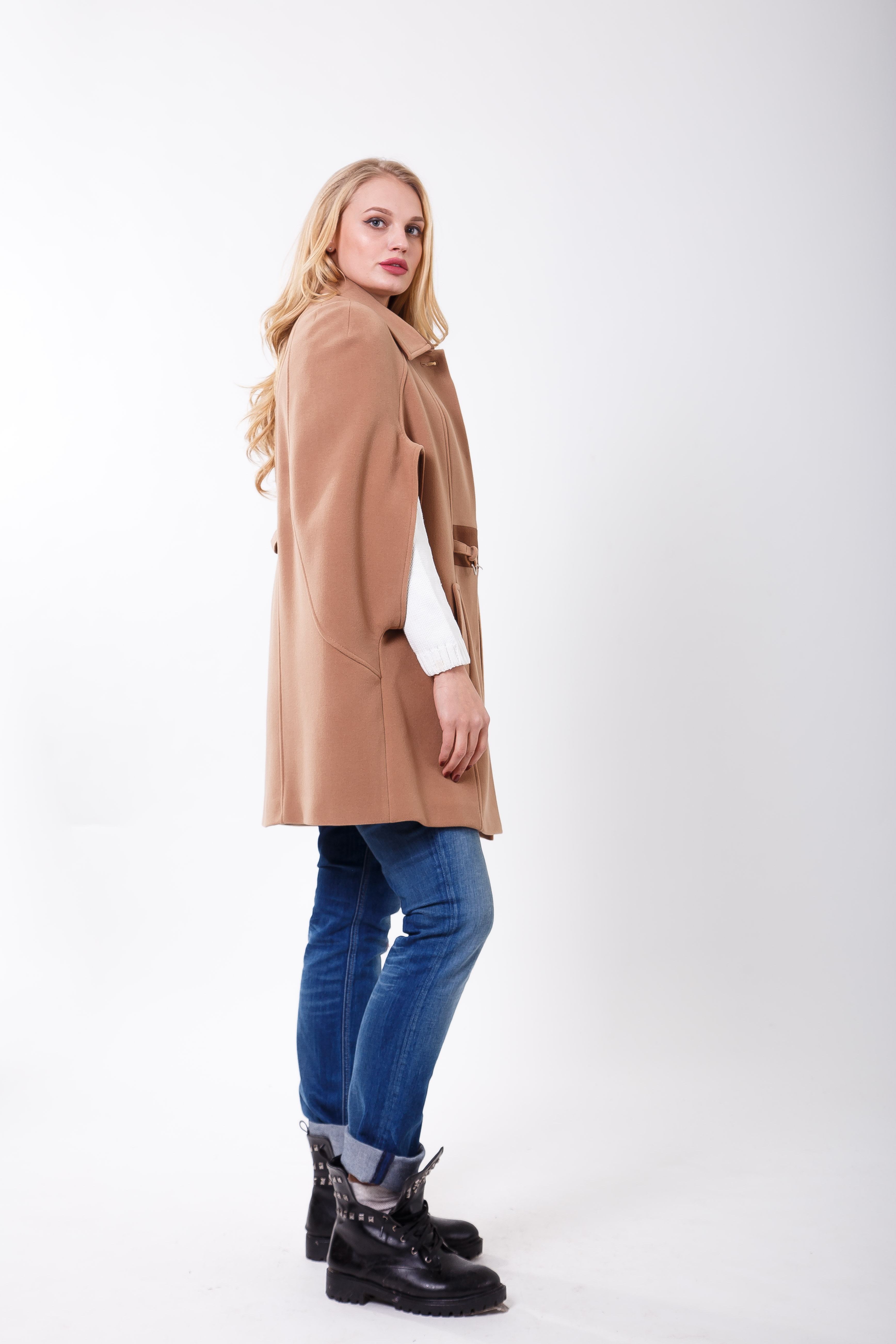 Фееричная эксклюзивная модель для экстравагантных молодых модниц. Для тех, кто любит удивлять и выделяться из толпы. Чтобы носить такое пальто нужна определённая смелость. Первым делом взгляд притягивает умопомрачительная пройма рукава. Можно экспериментировать со свитерами разных цветов.