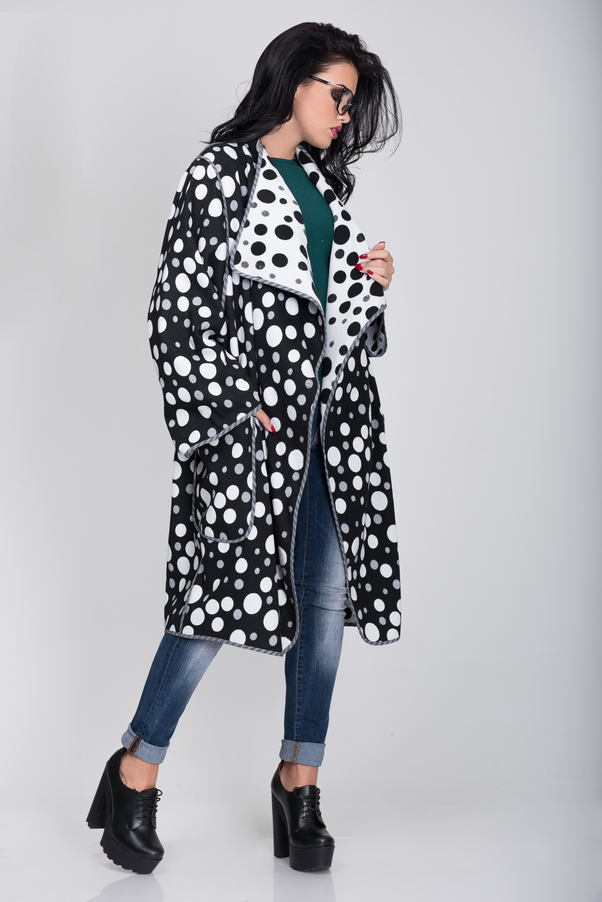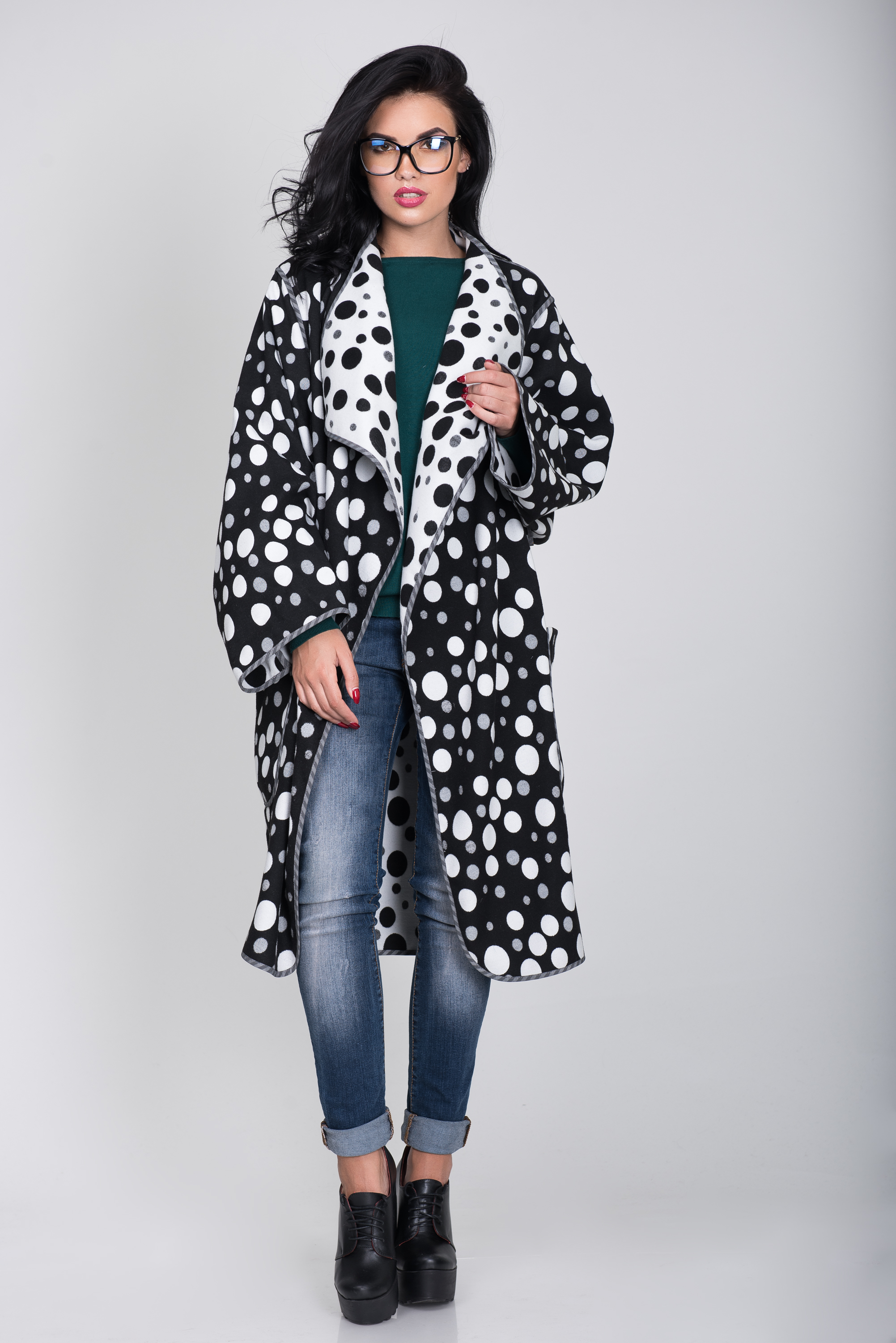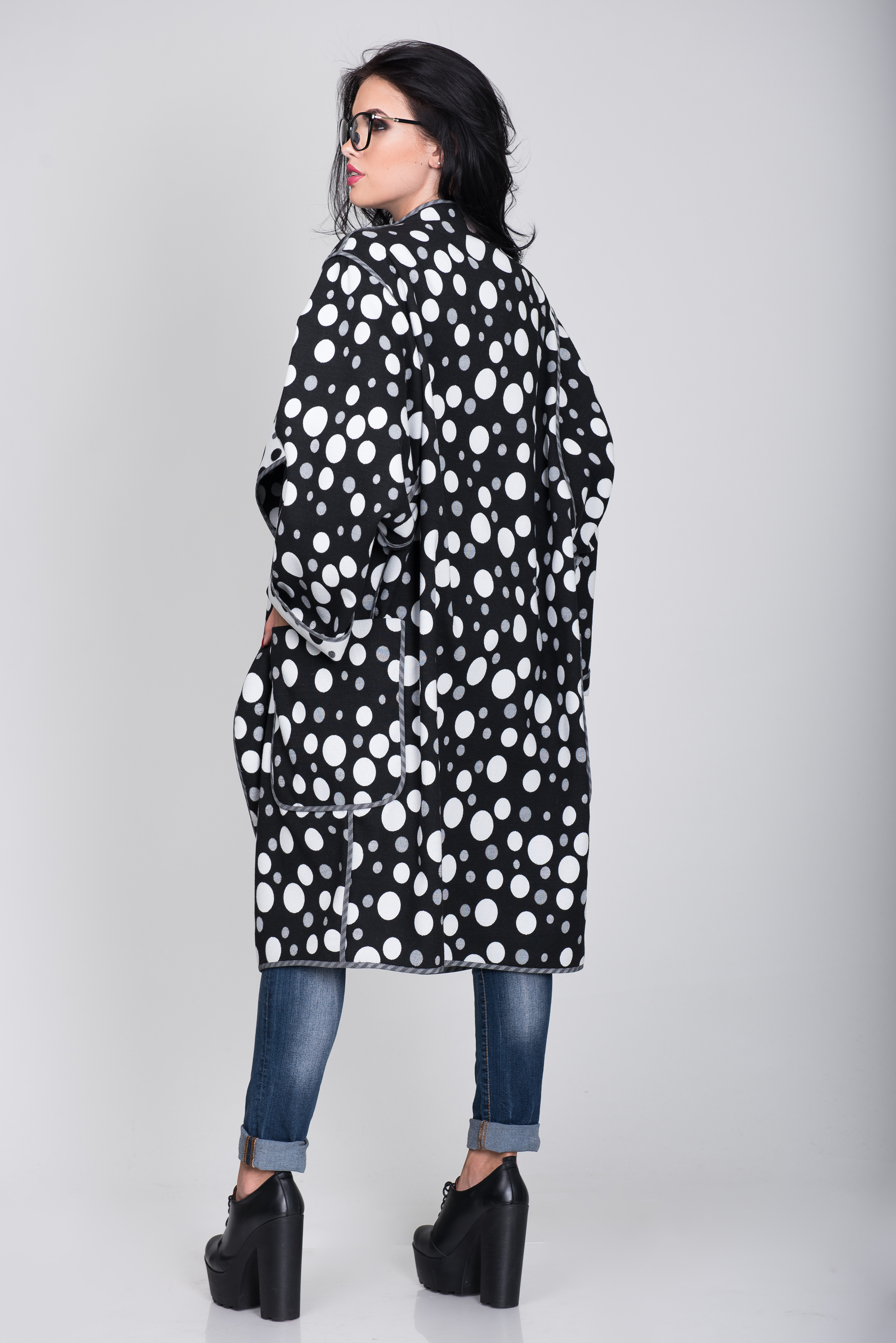 Пальто S-305 Горох белый+черный Артикул: S-305