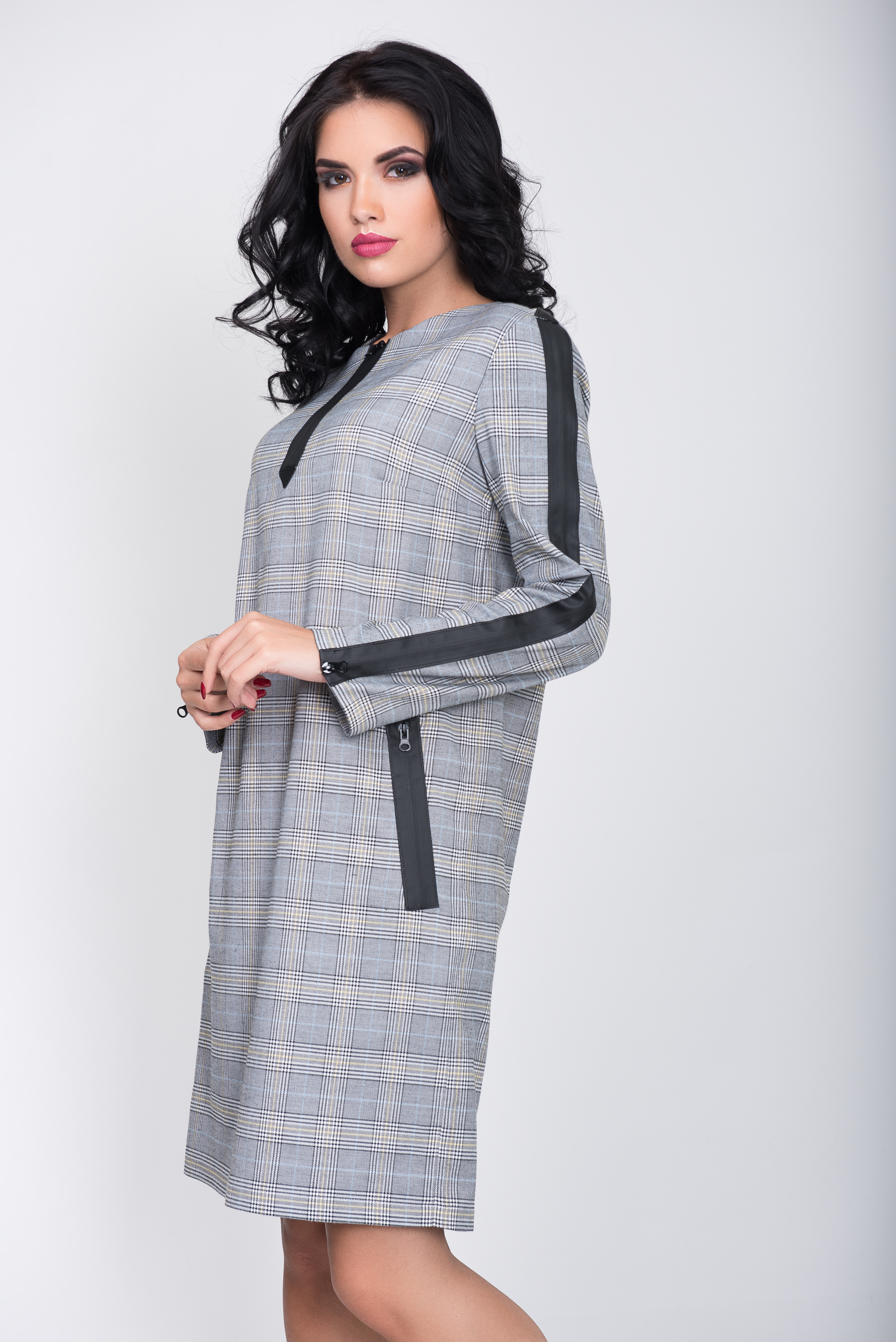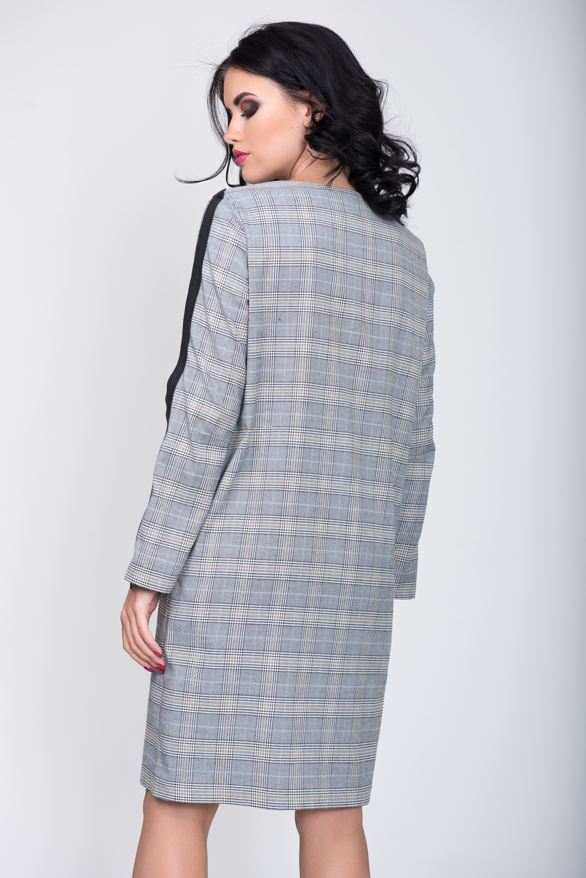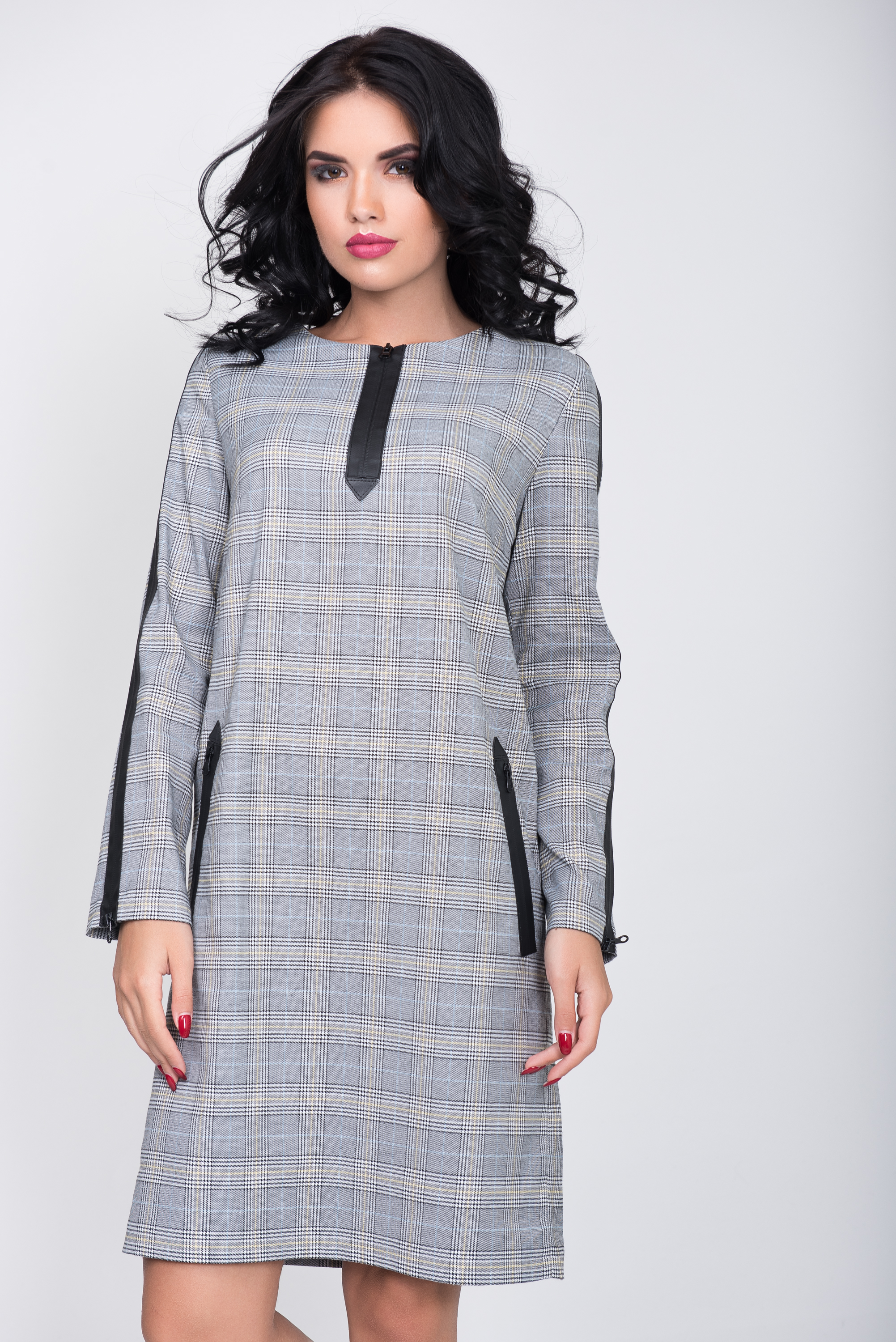 Платье S-9017 Серо-голубая клетка Артикул: S-9017